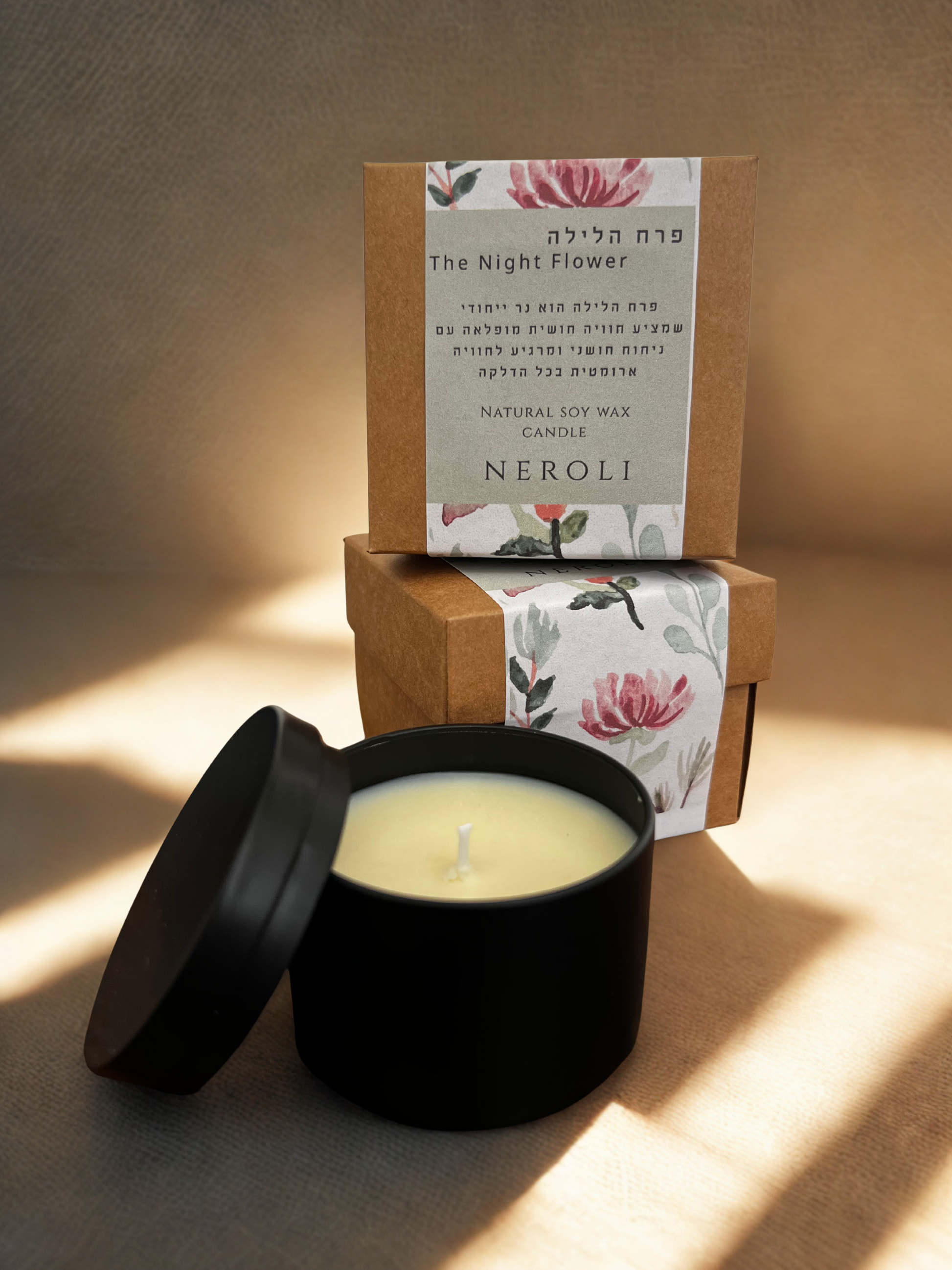 נר טבעי משעוות סויה, בעבודת יד, עם ניחוח ייחודי ומסתורי של פרחים. הריח העמוק והמרומם יוצר אווירה חושנית ואינטימית, עוטף את החדר באנרגיה ארומטית קסומה ומעניק חוויה של רוגע והתחדשות בכל הדלקה.