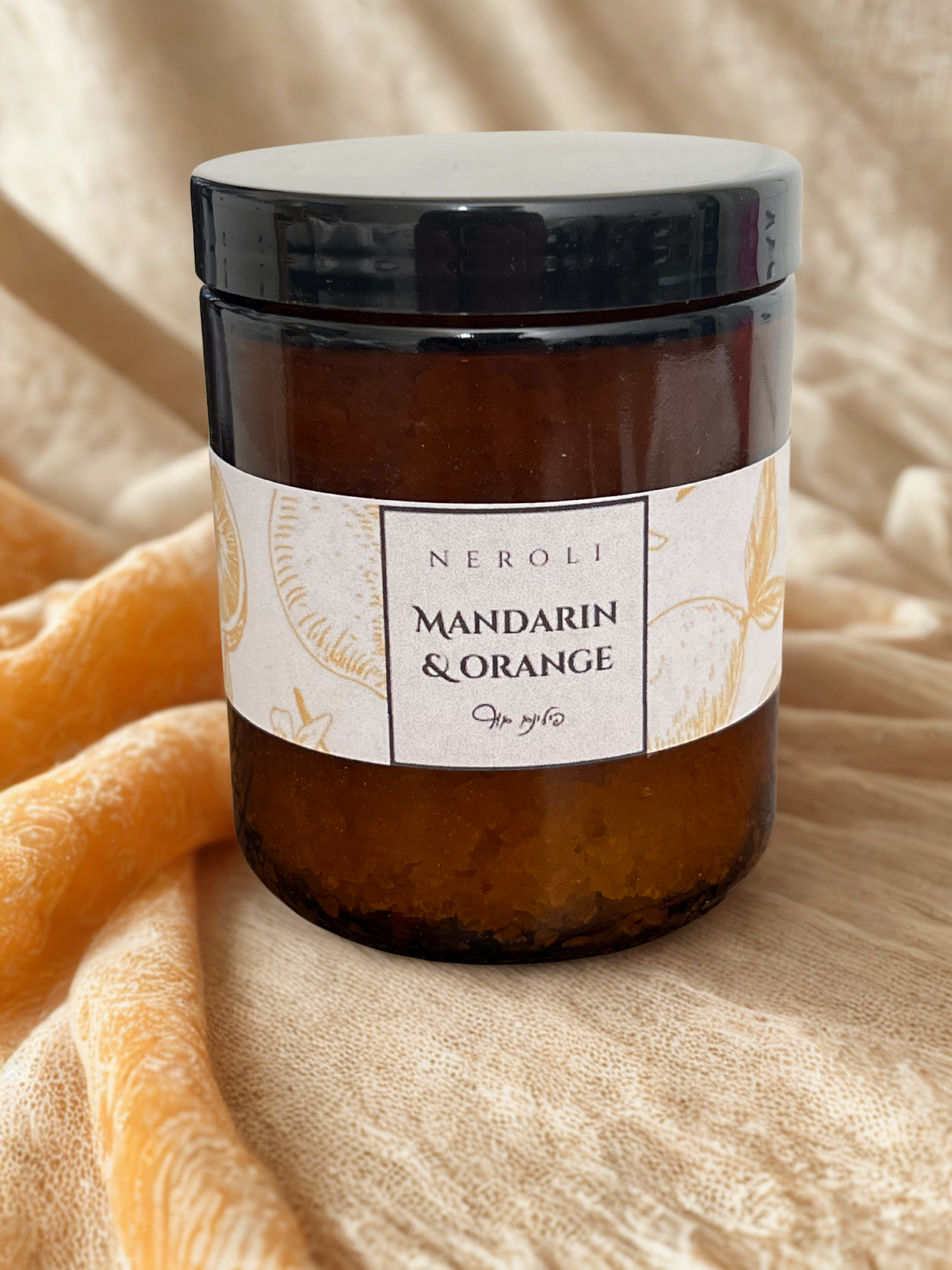 פילינג גוף טבעי ומרענן, המבוסס על מלח ים איכותי ושמן שקדים מזין, עם שילוב מפתה של שמני מנדרין ותפוז. הניחוח ההדרי מעורר את החושים, ממלא את הגוף באנרגיה מתוקה וחיובית, ומשאיר את העור רך, קורן וחלק כמשי.