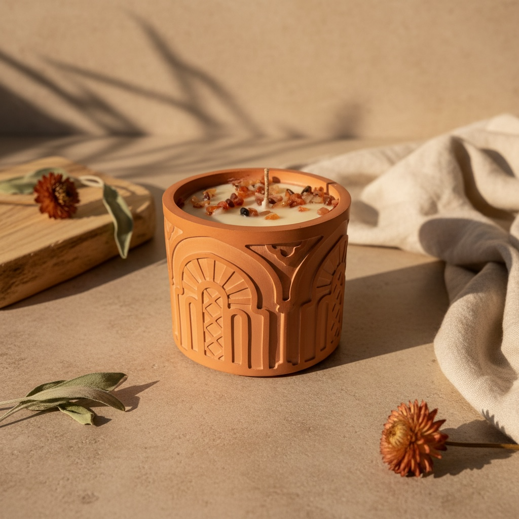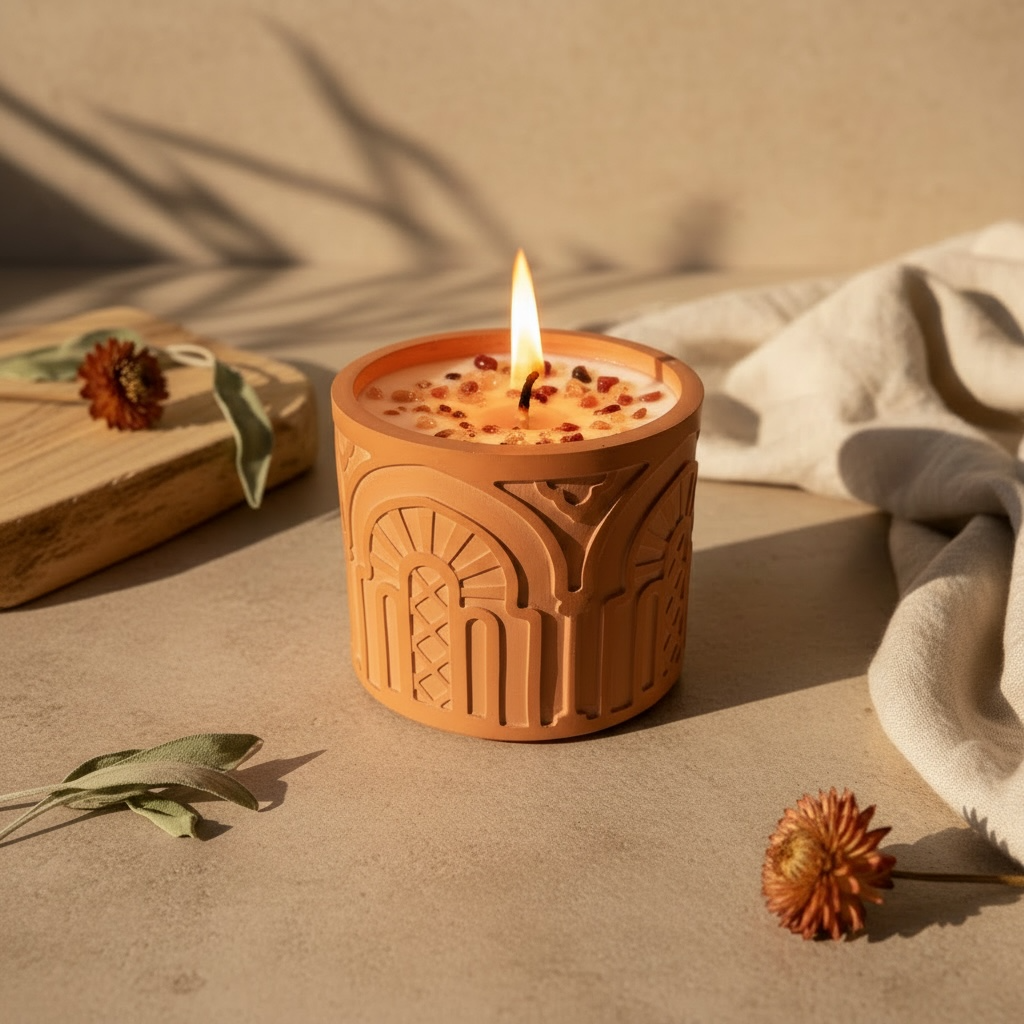אוֹפְּטִימִיּוּת | נר בכלי אבן בעיצוב אוריינטלי